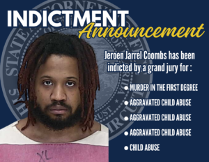 (Marion County, FL) Today, State Attorney Bill Gladson of the Fifth Judicial Circuit announces the grand jury indictment of 32-year-old Jeroen Jarrel Coombs of Citra, FL. A grand jury was convened to determine whether there was sufficient evidence to charge Coombs for the murder of 3-year-old Paisley Brown and the