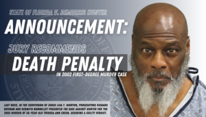 (Orange County, FL) Today, State Attorney Bill Gladson of the Fifth Judicial Circuit State Attorney’s Office announces the death penalty recommendation by jurors in the murder conviction of 59-year-old DeMorris Andy Hunter. Last week, in the courtroom of Judge Lisa T. Munyon, prosecutors Richard Buxman and Kenneth Nunnelley presented the
