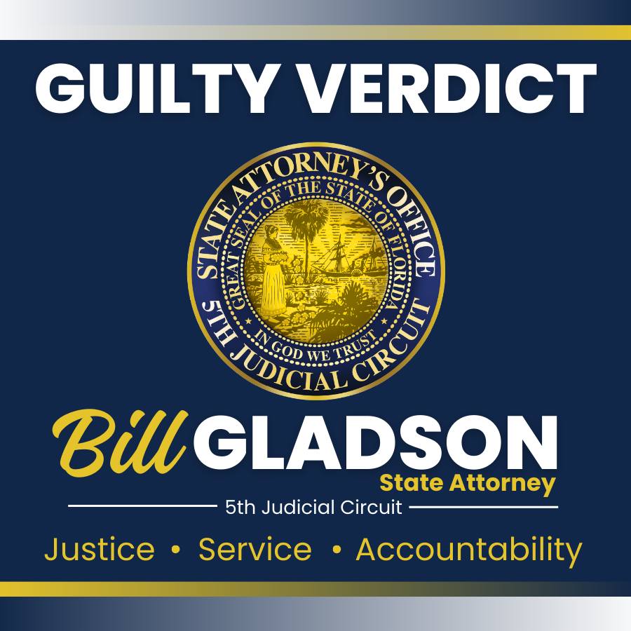 (Citrus County, FL) Yesterday, the Fifth Judicial Circuit State Attorney’s Office secured a guilty verdict in the fatal hit-and-run case against 37-year-old Mark Anthony Wieder. Jurors deliberated for nearly 45 minutes before finding Wieder guilty on charges of failing to stop at a crash involving a death and leaving a crash involving property damages.